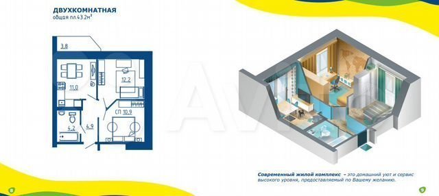 площадь 43 м2