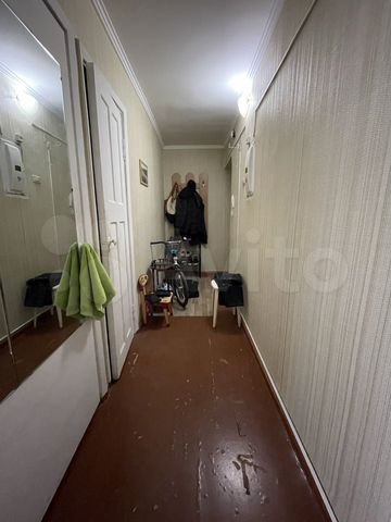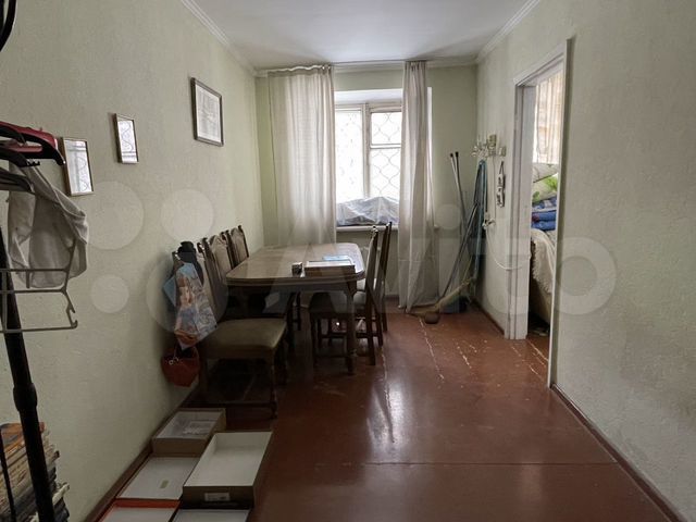 2-ком 1/5 Советская, дом 66, кирпичный дом, квартира не угловая, теплая, состояние квартиры - нормальное, жилое, общая площадь квартиры 46,4 кв.м., санузел совмещенный, батареи - чугунные, в санузле - кафельная плитка до потолка, в остальное все как на фотографиях. Кроме того, в квартире остается -кухонный гарнитур и газовая плита.